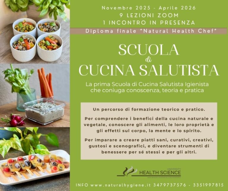 Una Scuola trasformativa, unica nel suo genere, che fonde la precisione scientifica delle 5 Leggi Biologiche con la saggezza ancestrale dell’Igiene Naturale. Non un semplice corso, ma un vero e proprio viaggio di 12 mesi per diventare padroni della propria salute, in modo consapevole, profondo e definitivo (continua a leggere…)