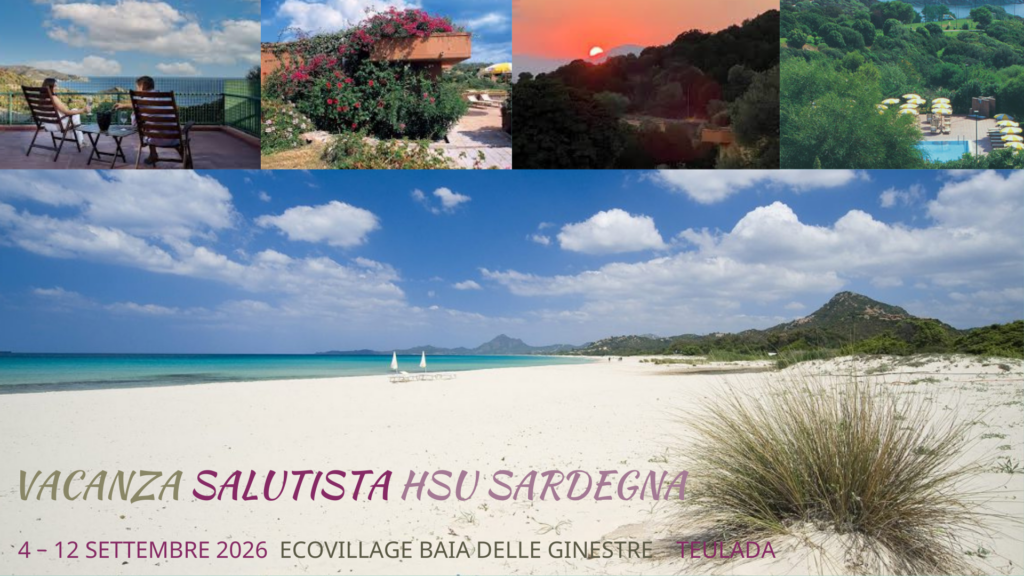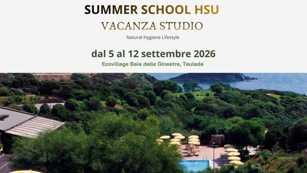 La vacanza studio HSU è una grande opportunità per chi vive in Sardegna e vuole acquisire la parte centrale e fondante della scienza igienista ed è anche un cammino intermedio per l’acquisizione del diploma di “ Educatore alla scienza della salute naturale e igienista”. Unire lo studio alla bellezza e alla salute è una formula tipica della HSU, per nutrire lo Spirito, la nostra energia vitale e la conoscenza. (per saperne di più…)