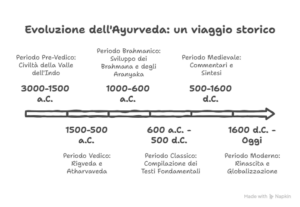 Al di là del valore simbolico di questi racconti, la realtà storica ci dice che l’Ayurveda si sviluppò gradualmente attraverso millenni di osservazione empirica, sperimentazione e trasmissione orale di conoscenze.