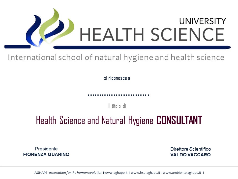 “Consulente Igienista” (Health Science and Natural Hygiene Consultant).