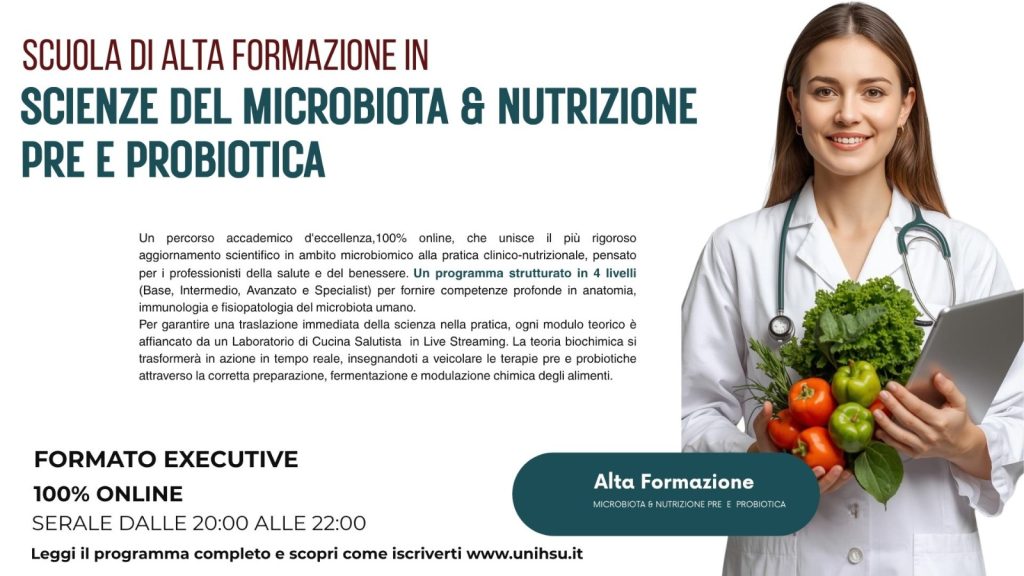 Un percorso accademico d’eccellenza, 100% online, che unisce il più rigoroso aggiornamento scientifico in ambito microbiomico alla pratica clinico-nutrizionale, pensato per i professionisti del benessere.